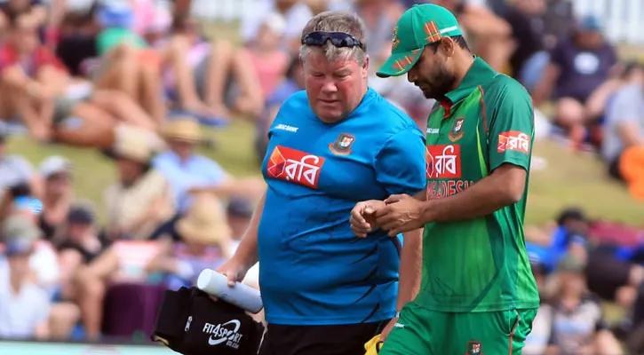 হাতে বল লেগে বুড়ো আঙুল ভেঙে যাওয়ায় মাশরাফিকে মাঠের বাইরে থাকতে হতে পারে ৬ থেকে ৮ সপ্তাহ।