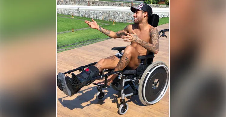 নেইমার হয়তো হতাশা কাটাতেই হকিংকে প্রেরণা হিসেবে নিয়েছেন। ছবিতে দেখা যায়, হুইলচেয়ারে বসা নেইমার একদিকে চেয়ে হাসছেন। খালি গায়ে তার ট্যাটু করা শরীরটাও স্পষ্ট।